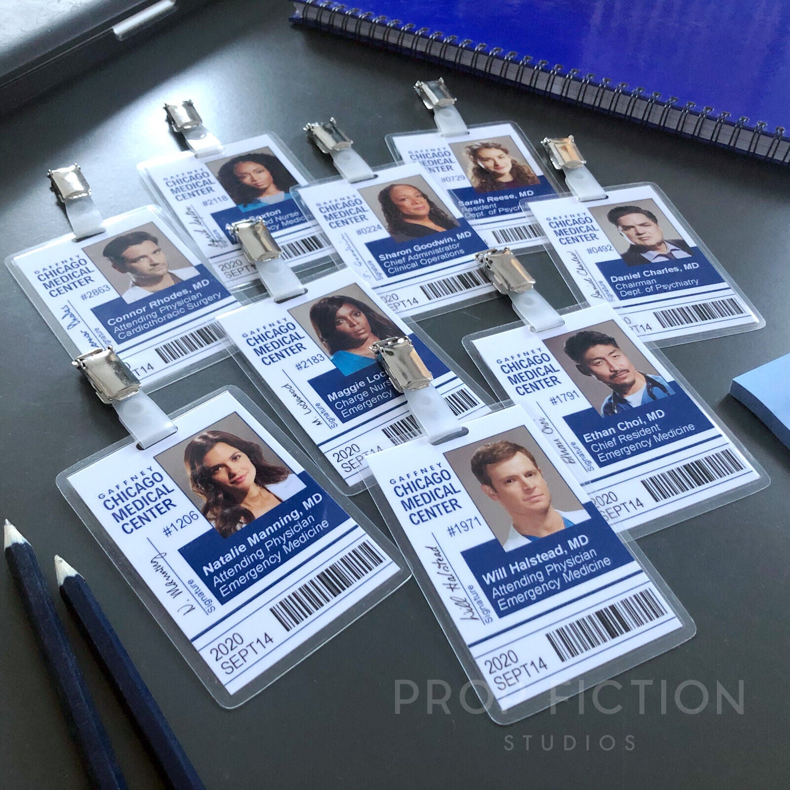 This is a rare opportunity to own these highly sought-after Chicago Med-inspired laminated clip-on hospital security access passes! These reproduction prop IDs are professionally printed using the best quality materials. They are created using traditional film and television art department techniques for added authenticity and so are perfect for on-screen or display use. These clip-on IDs are available individually or as a set of nine characters as listed below: