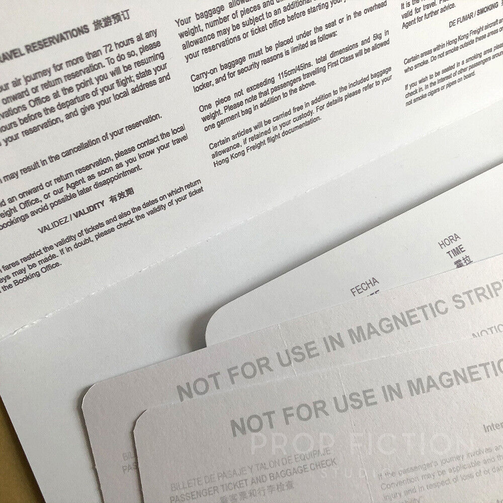 This is a rare opportunity to own these highly sought-after DAD-inspired Hong Kong Freight flight tickets as handed to Bond by Mr Chang, undercover Chinese Intelligence, whilst posing as the Royal Rubyeon Hotel Hotel manager! These reproduction props are professionally printed using the best quality materials. They are created using traditional film and television art department techniques for added authenticity and so is perfect for on-screen or display use.
