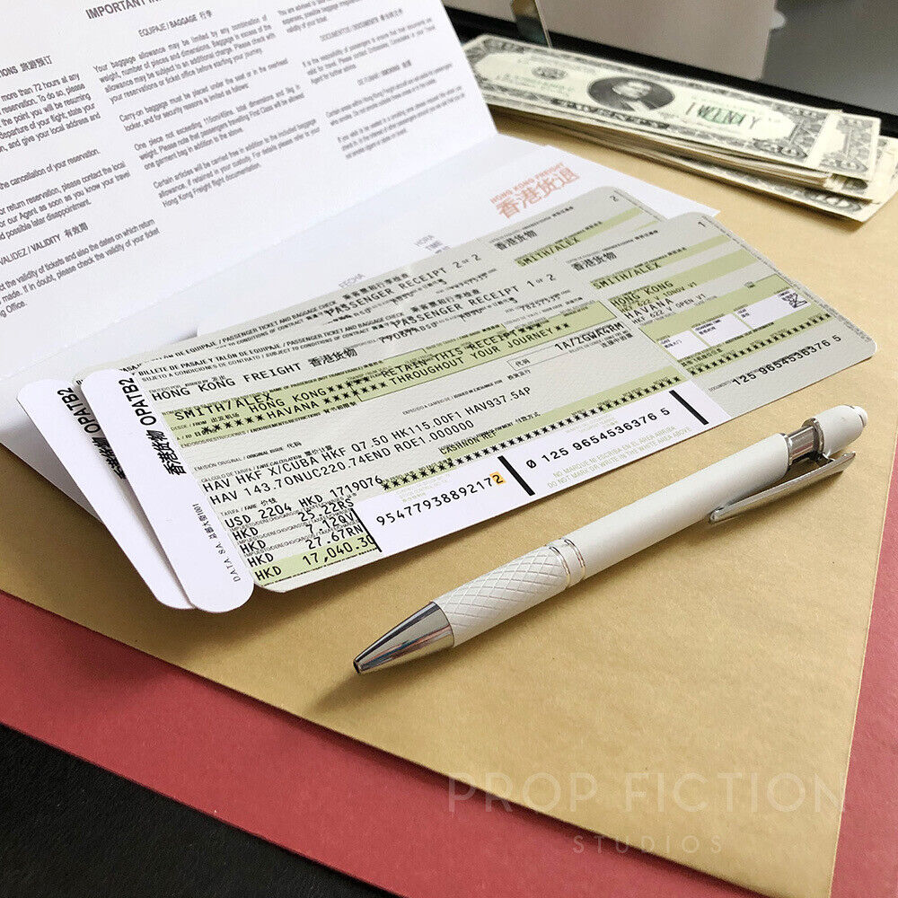 Note: This listing is for a pair of Hong Kong Freight tickets with wallet/folder/holder as pictured. They are for travel from Hong Kong to Havana under James Bond’s alias 'Alex Smith’. The double-sided tickets have perforated header and boarding pass sections similar to real airline tickets. The auction also includes the light cardstock ticket wallet / folder as pictured.