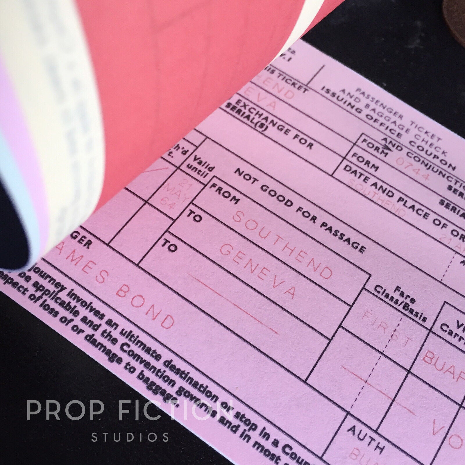James Bond 007 Cosplay Display: Goldfinger - Prop BUAF British United 10-Page Airline Ticket
