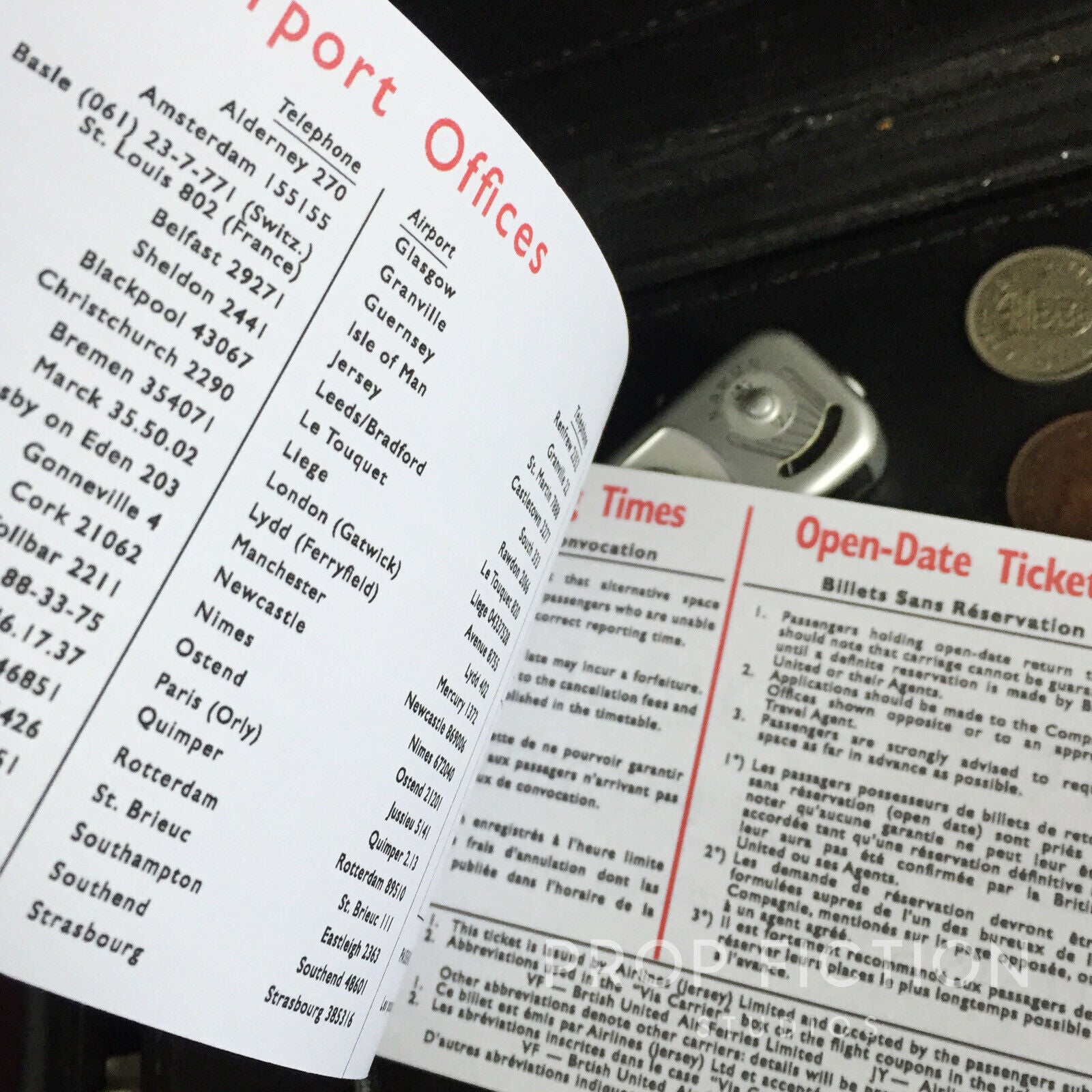 Note: This listing is for a vintage-style prop British United Air Ferries 'Passenger and Vehicle Ticket’. The flight ticket contains ten pages (including light cardstock front and back covers) of which five are perforated as per real tickets issued in the mid-1960s. The document is held by a pair of staples at the stub as pictured.