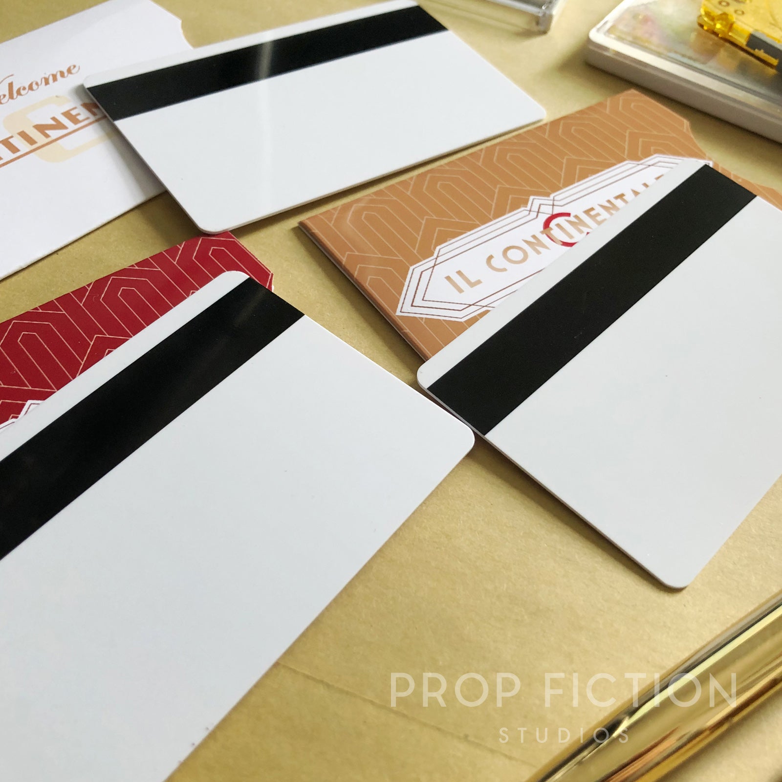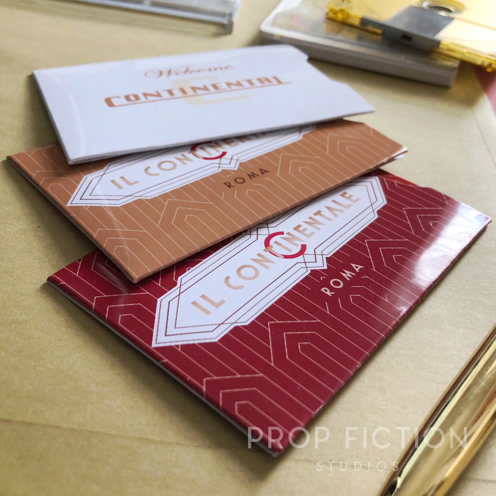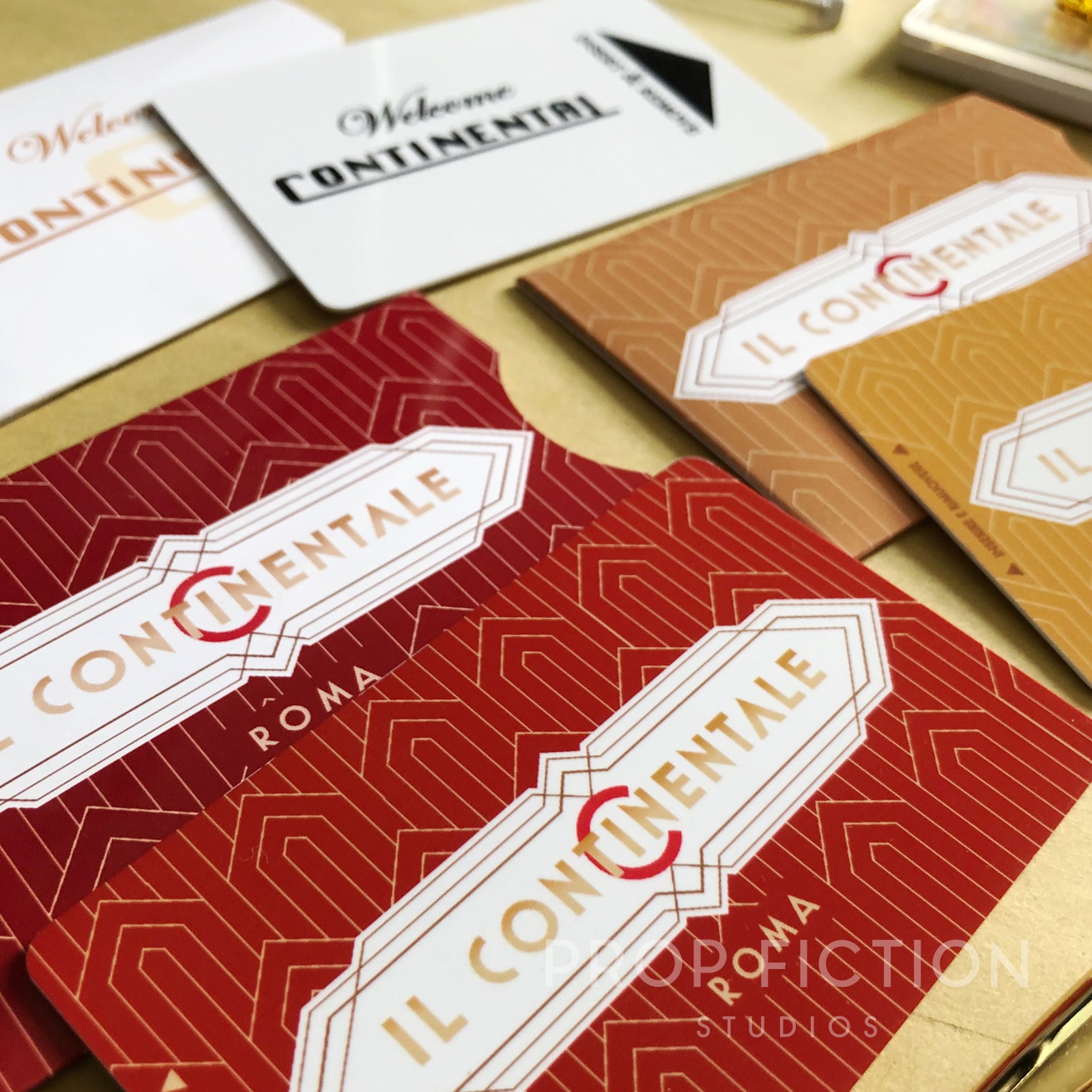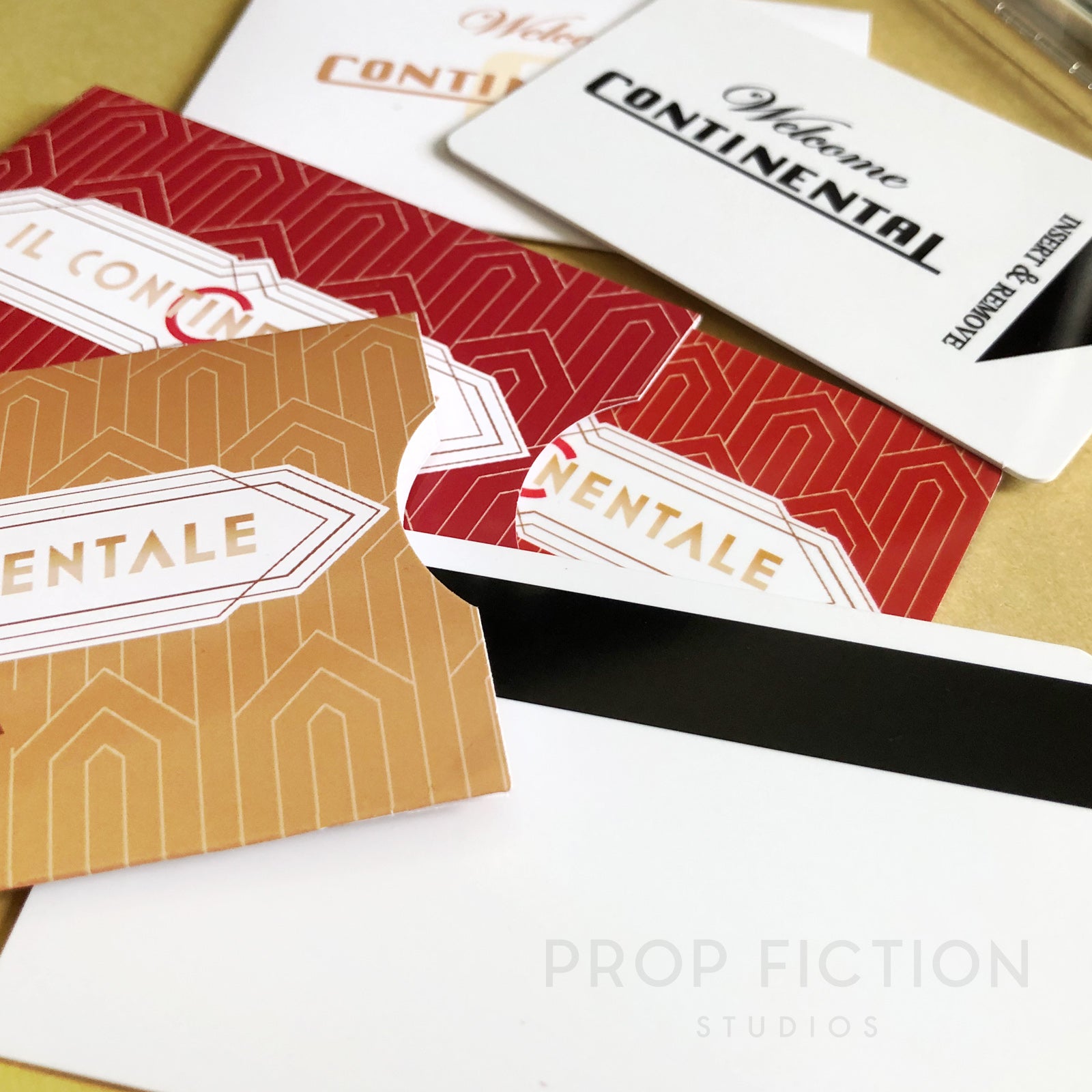 This is a rare opportunity to own these highly sought-after prop key cards inspired by the fictional Continental Hotels in New York and Rome. These reproduction props are professionally printed using the best quality materials. They are created using traditional film and television art department techniques for added authenticity and so are perfect for on-screen, cosplay gathering or display use. The set of three key cards and sleeves includes: