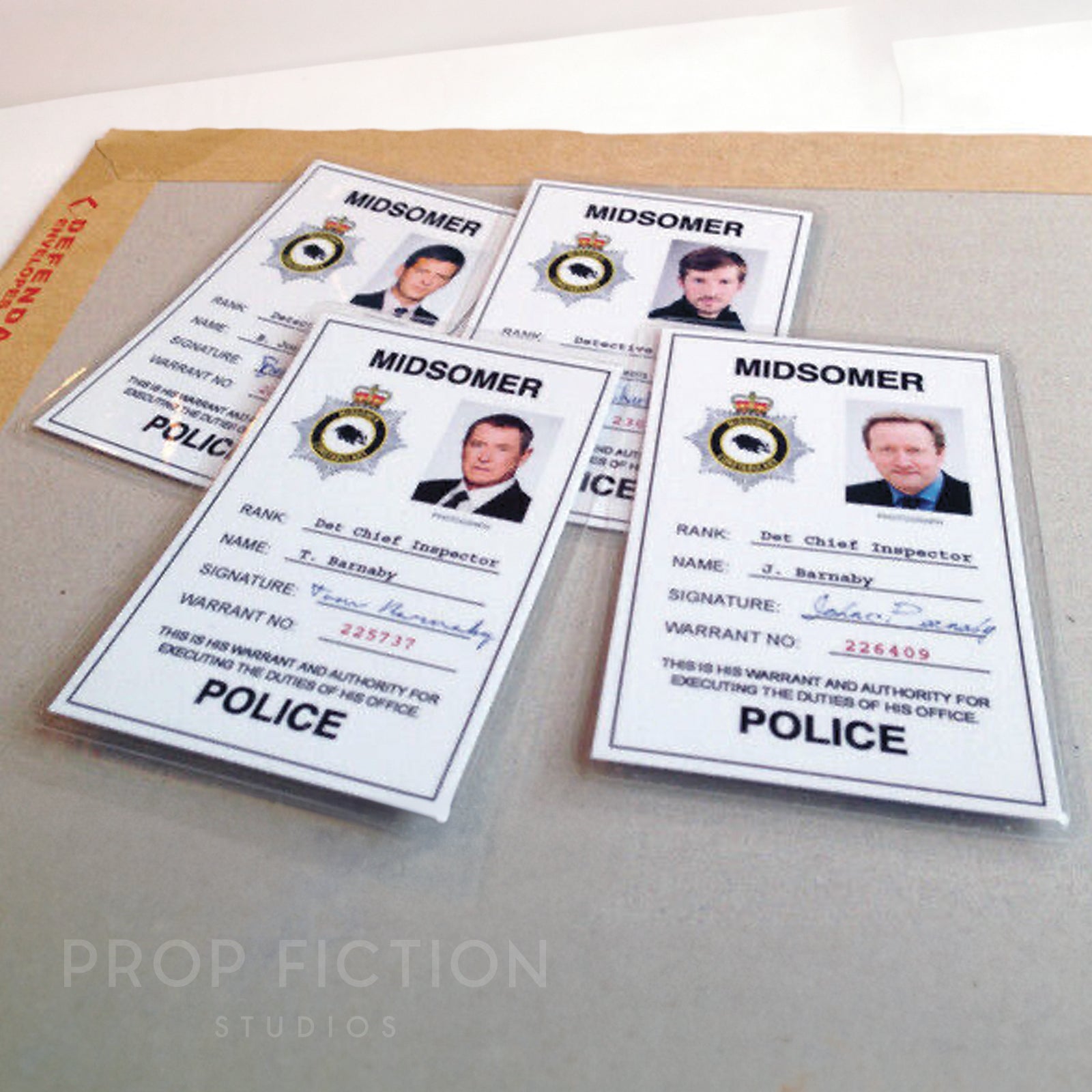 This is a rare opportunity to own these highly sought-after Midsomer Murders laminated badges! This set of reproduction prop IDs are professionally printed using the best quality materials. They are created using traditional film and television art department techniques for added authenticity and so are perfect for on-screen or display use. This set of four of badges consists of: