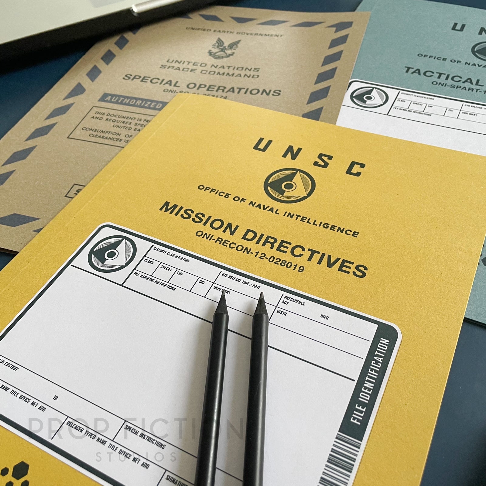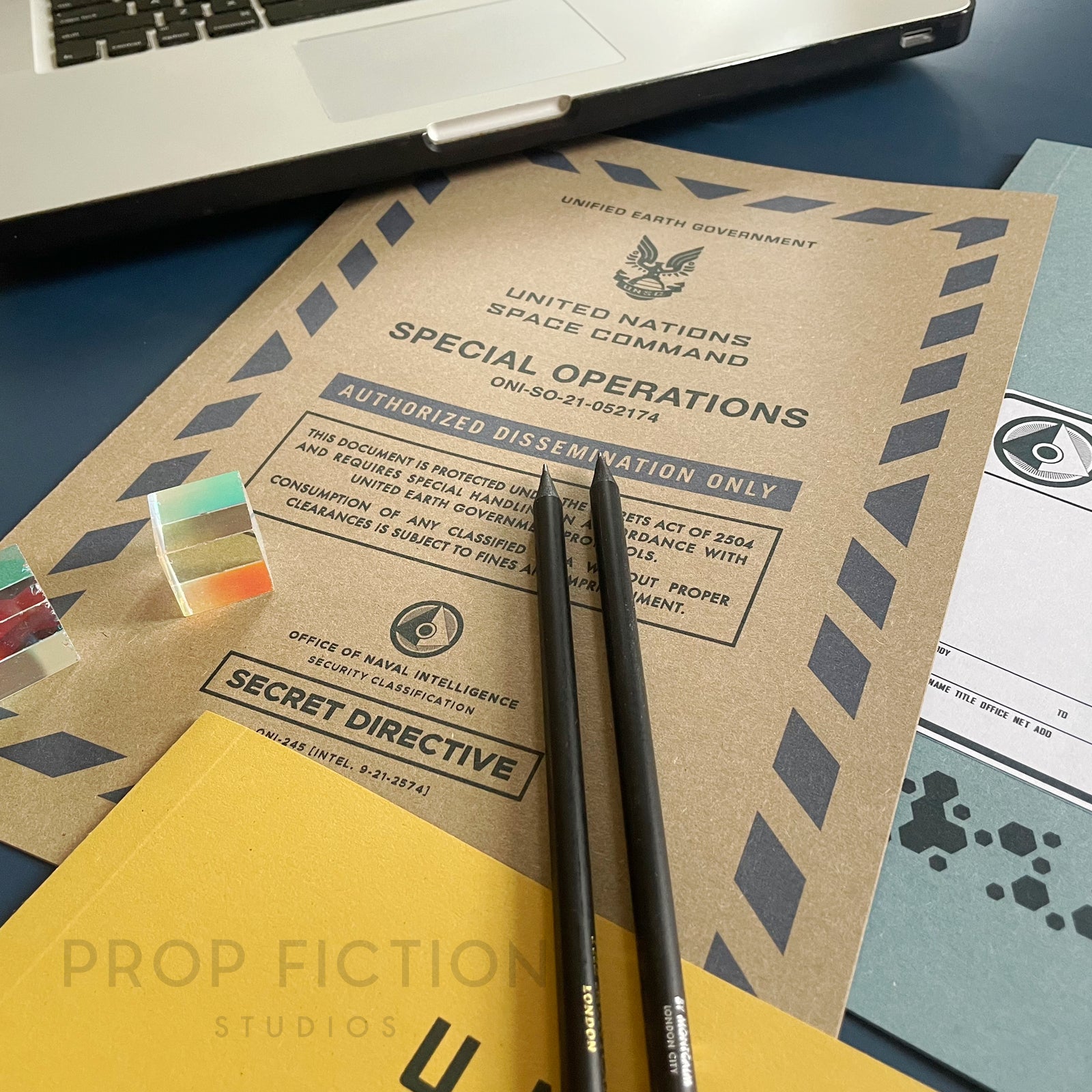 Movie Prop Top Secret ONI Intelligence Files / 3 x Cosplay UNSC Folder Set