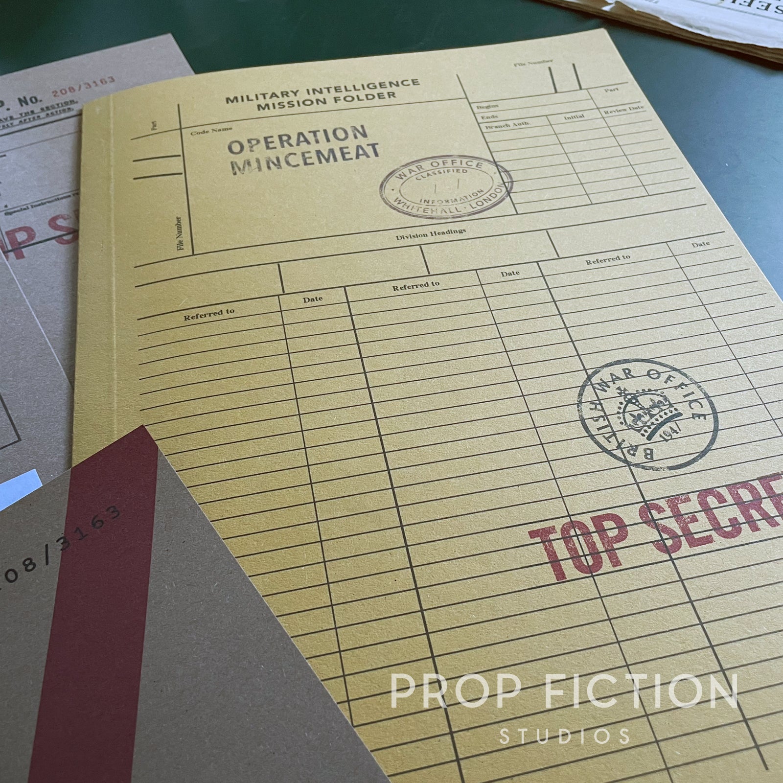 Movie Prop 'Operation Mincemeat' Top Secret Files / 4 x Cosplay WW2 Folder Set