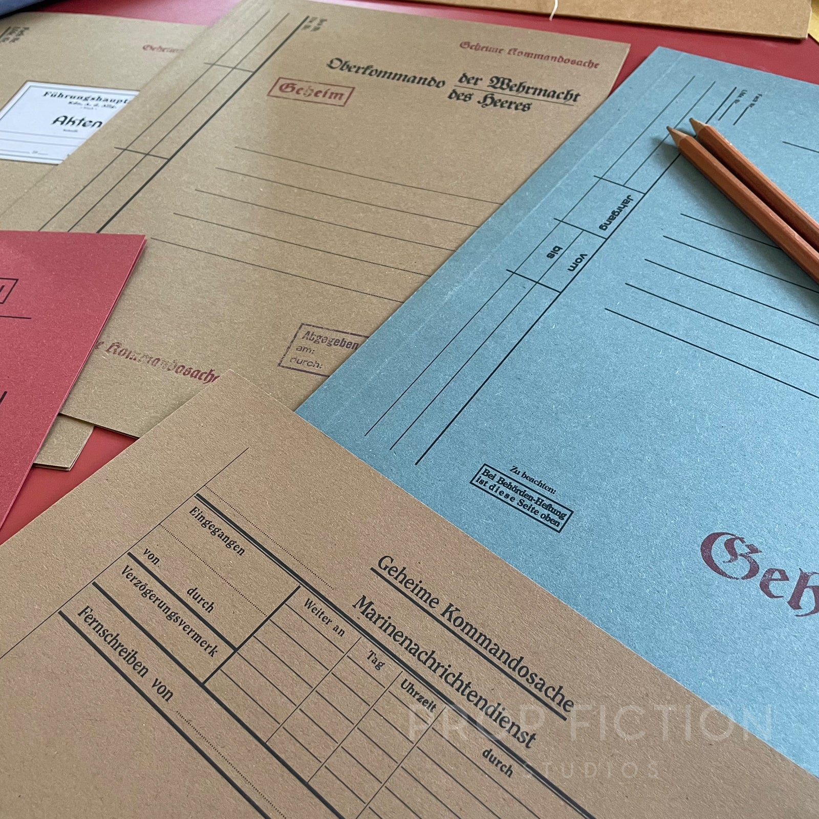 Prop 1930s / 1940s Cosplay Spy Files / 5 x Vintage German Intelligence Folder Set
