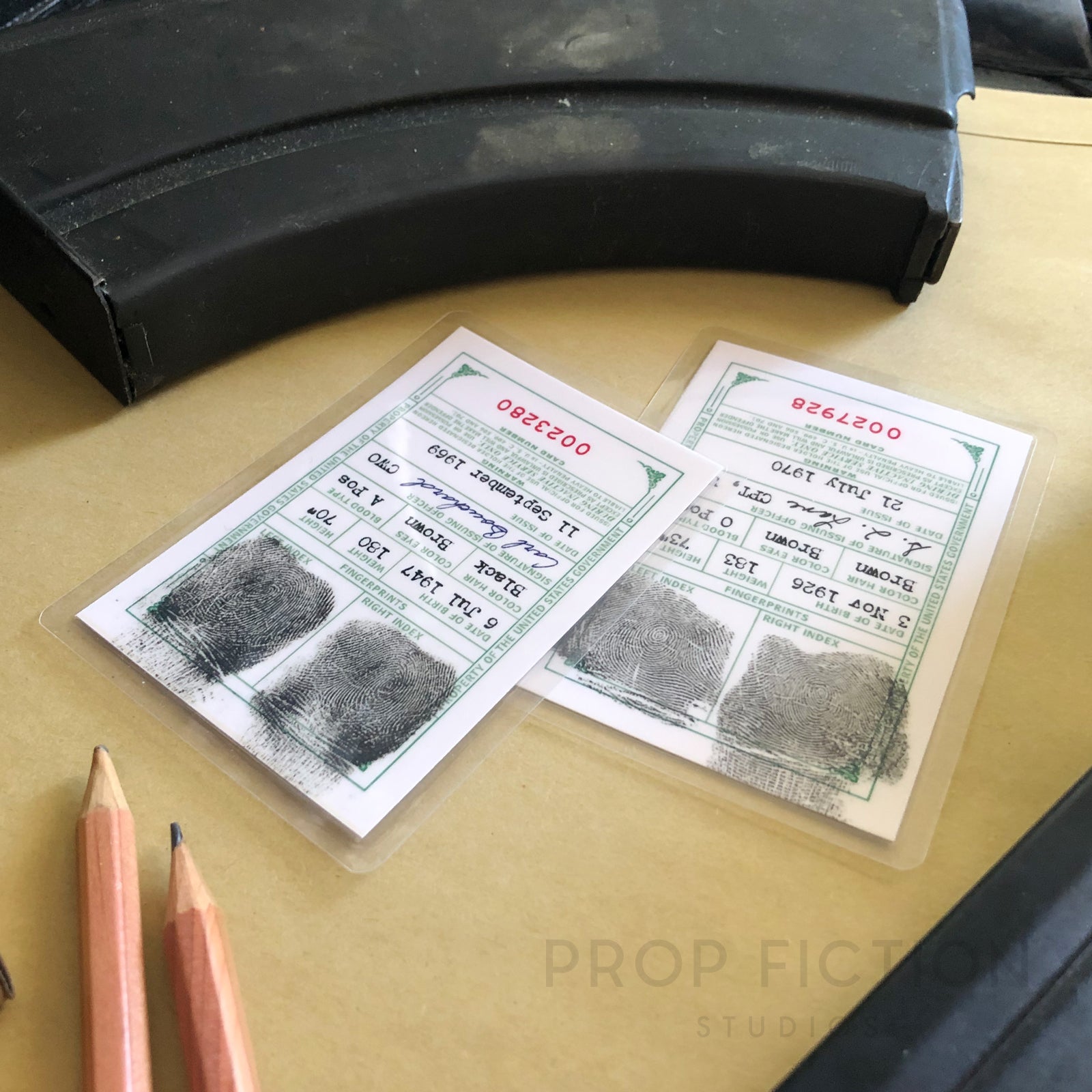 This is a rare opportunity to own these highly sought-after double-sided laminated wartime-style armed forces cards inspired by the Rambo films! This pair of reproduction prop IDs are professionally printed front and back using the best quality materials. They are created using traditional film and television art department techniques for added authenticity and so are perfect for on-screen or display use. This pair of identification cards consists of: