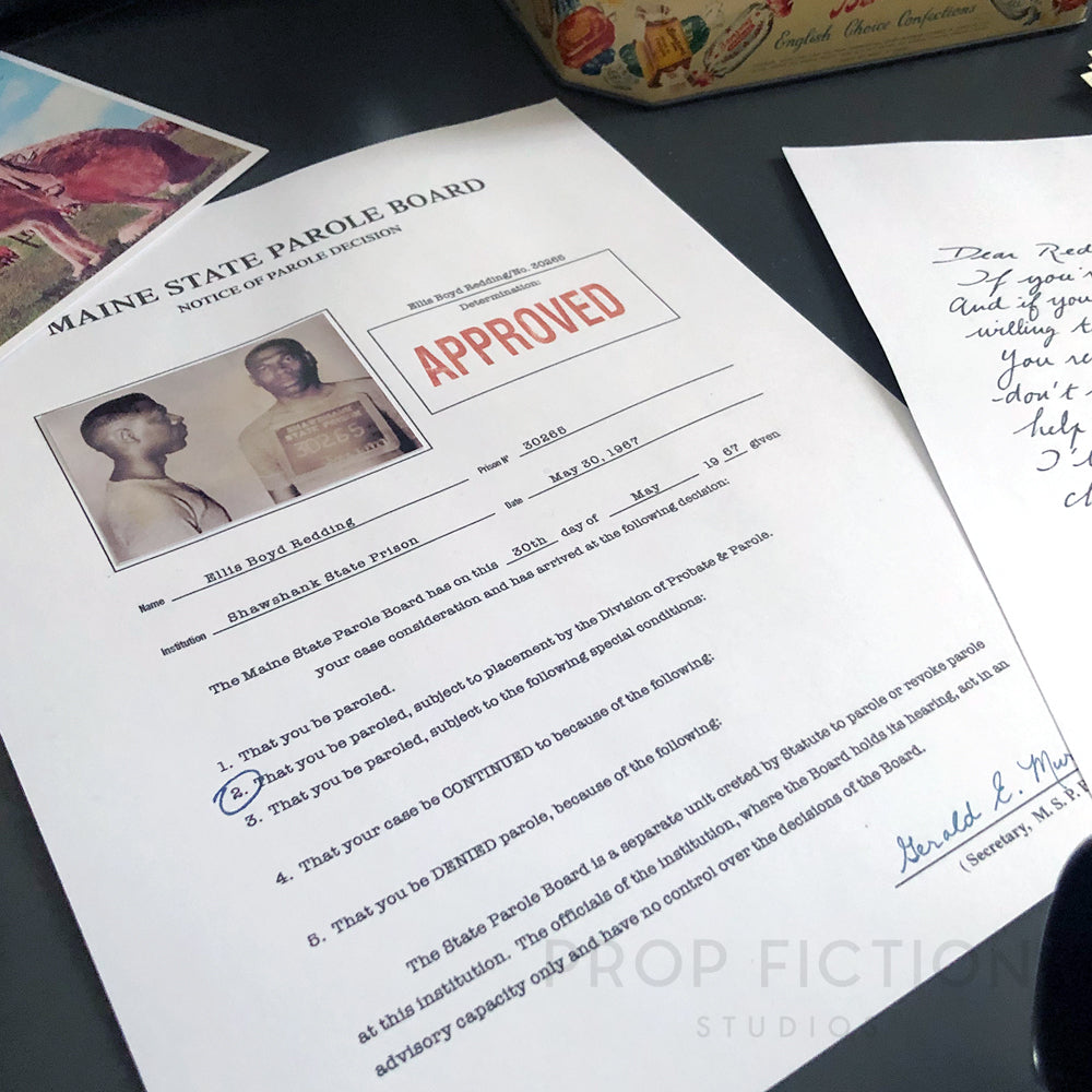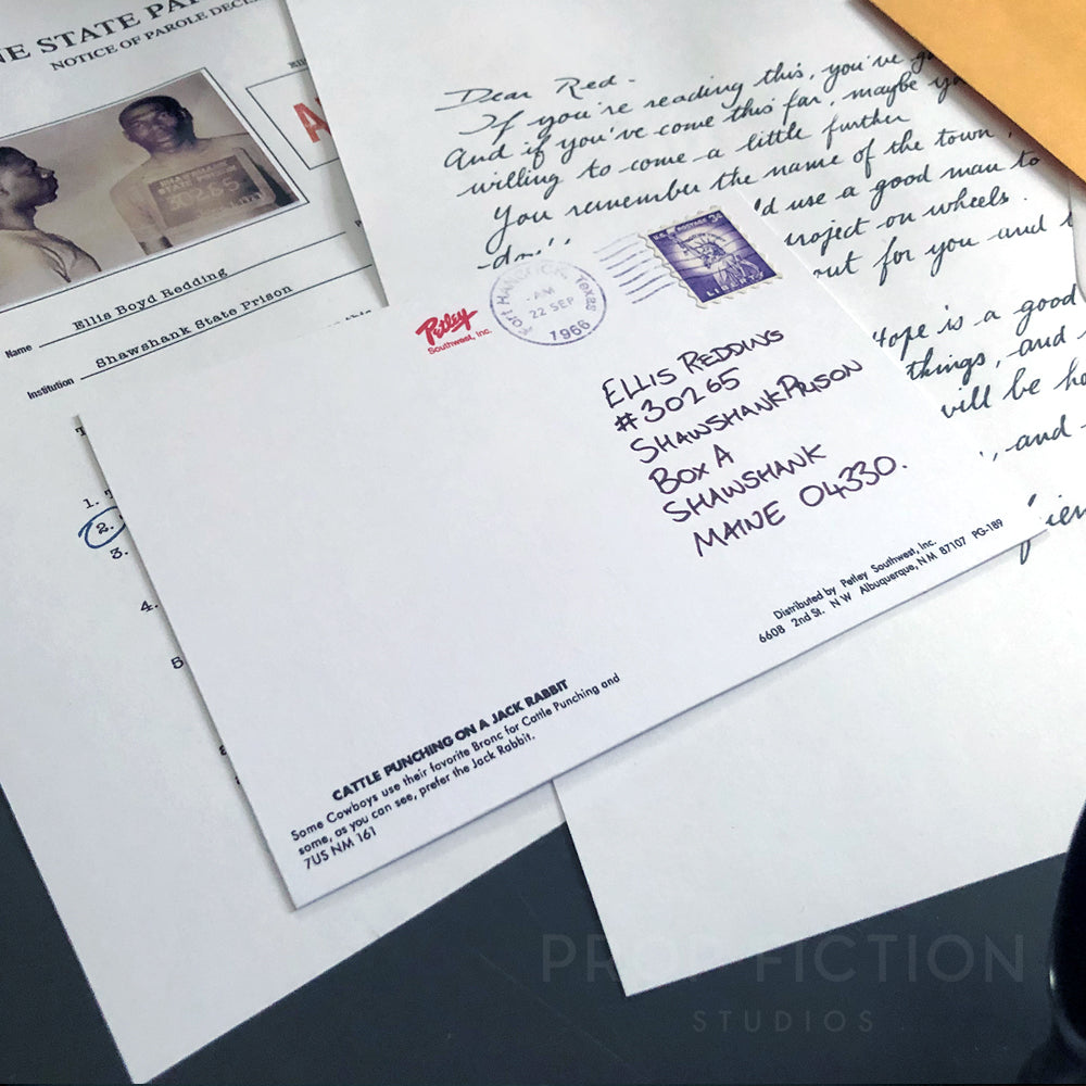 Shawshank Redemption - Red’s Postcard / Parole Form / Prop Letter Replica Set
