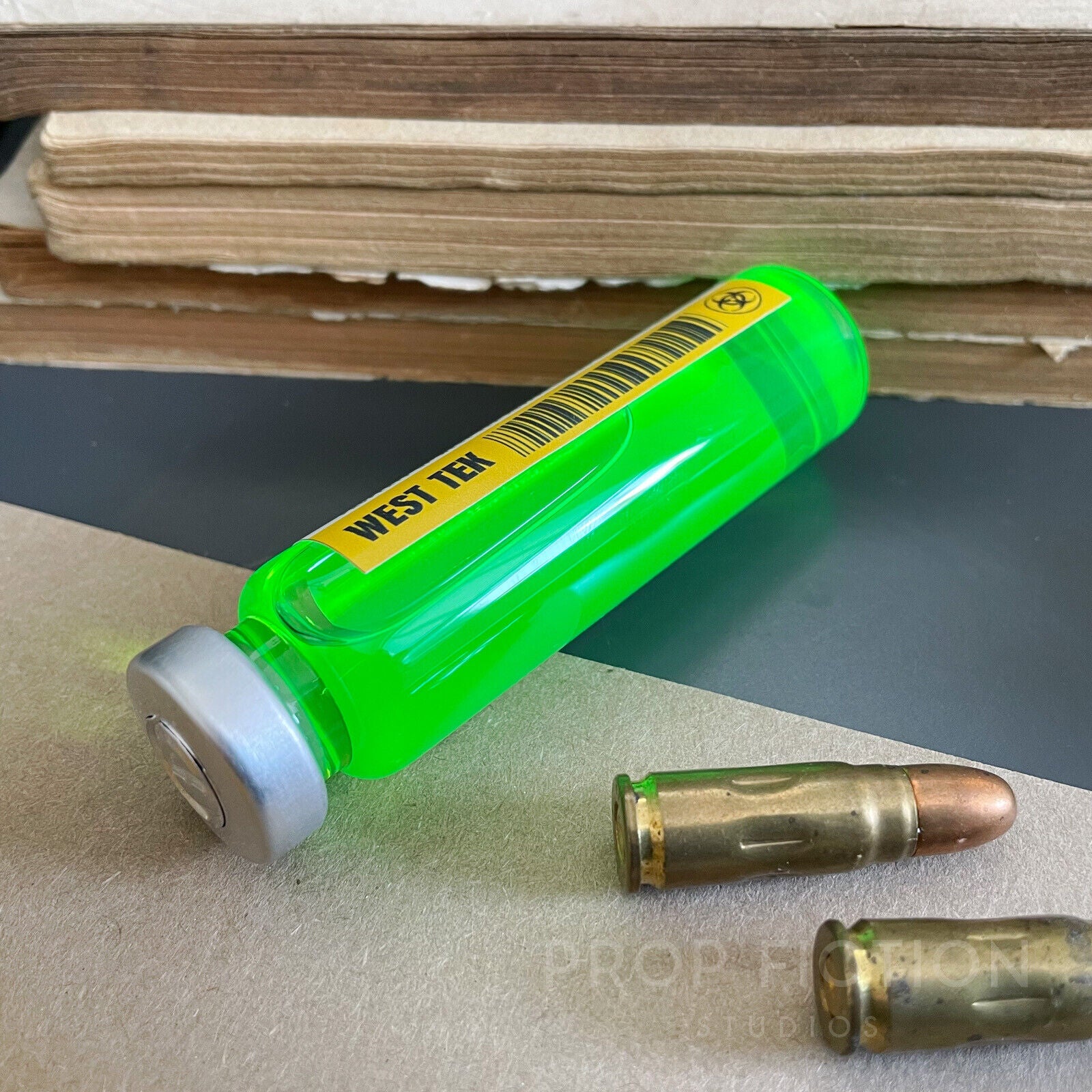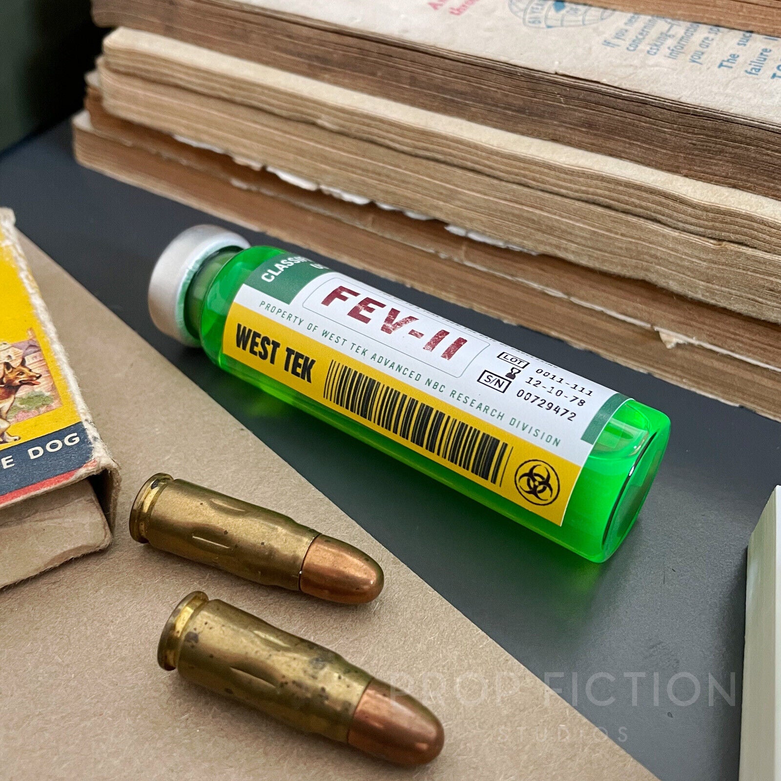 This is a rare opportunity to own this highly sought-after Fallout-inspired fictional prop laboratory research sample vial! This reproduction prop is professionally created using the best quality materials. It is created using traditional film and television art department techniques for added authenticity and so is perfect for on-screen or display use.